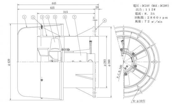 ●分布曲線補正板つきの羽根及び増圧風向制御板の採用により約31〜82・/分の吸・排気量を確保 することに成功。しかもMTH樹脂製なので高温にも強くねじれなどによる変型のおそれはありません。